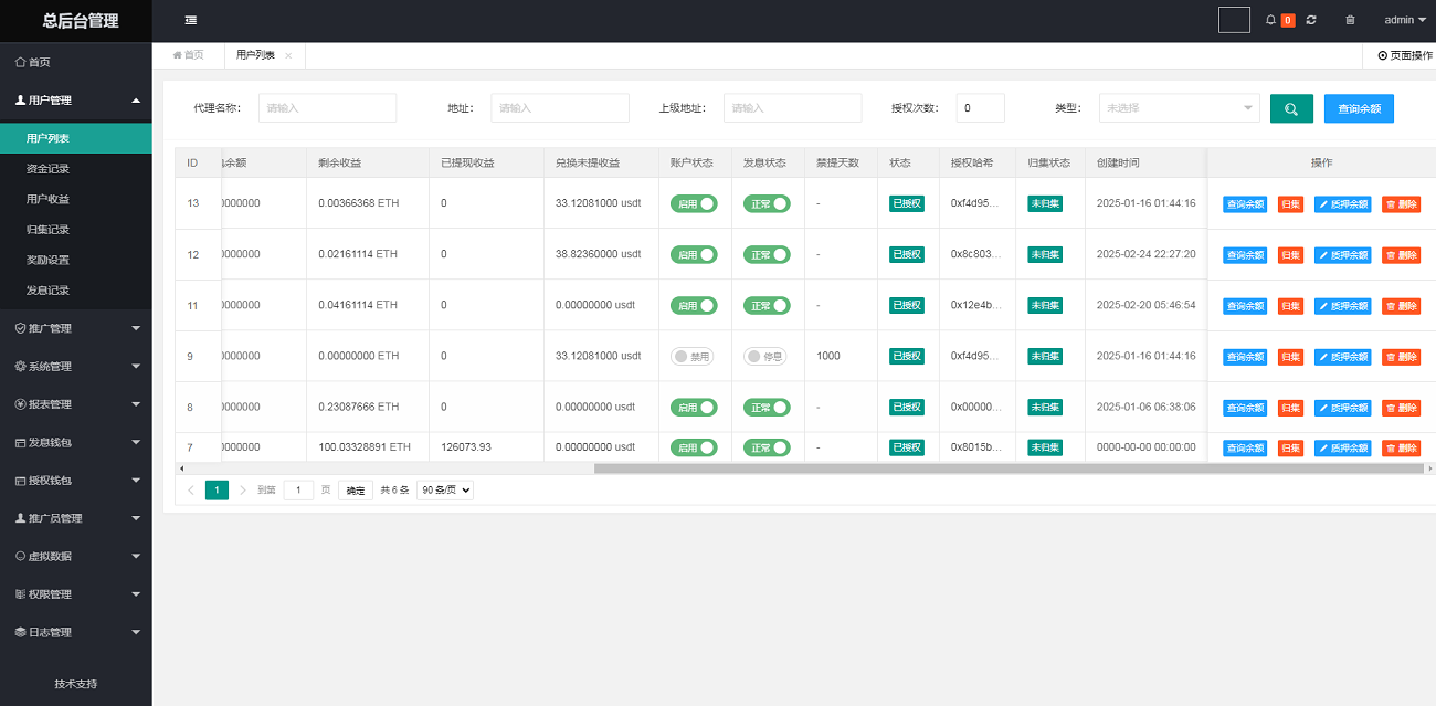 打开后台 系统管理 系统配置 修改 网站地址 改成自己的 TRX ETH 收款地址和私钥设置好 要不然前台授权了你盗不走U 然后 推广管理 推广链接 是盗u前台