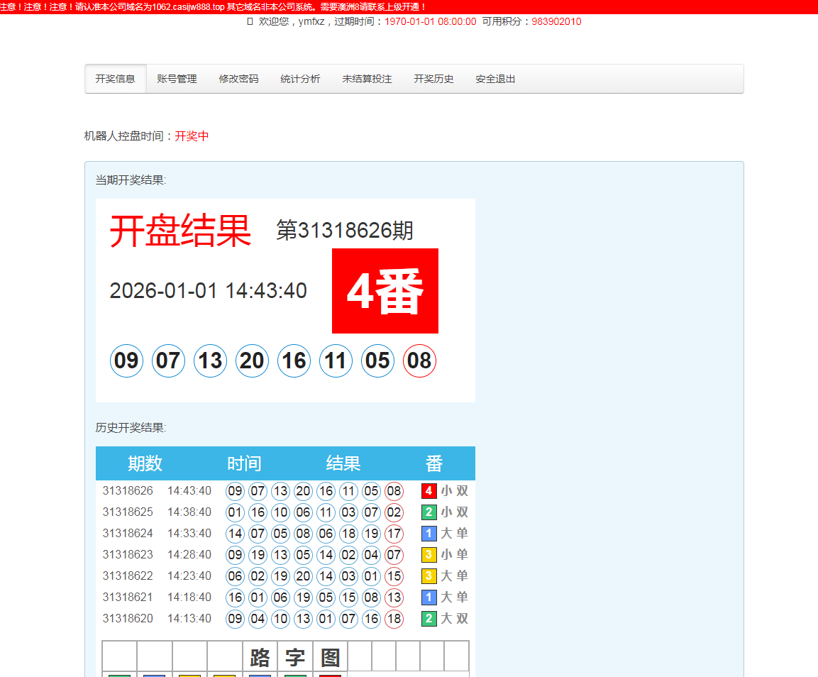 开奖对接的是168,可以正常采集开奖结算,总后台没有开下级代理账户的地方,前端需要在机器人后台创建玩家后复制对应链接才可以进入
