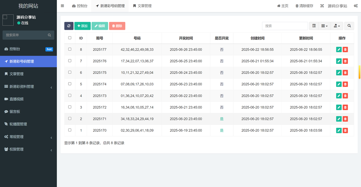 后台倒是显示有很多彩种,前端只有一个,编译后的没办法去修改,后台可以修改开奖、上传图库,感觉前端是阉割版