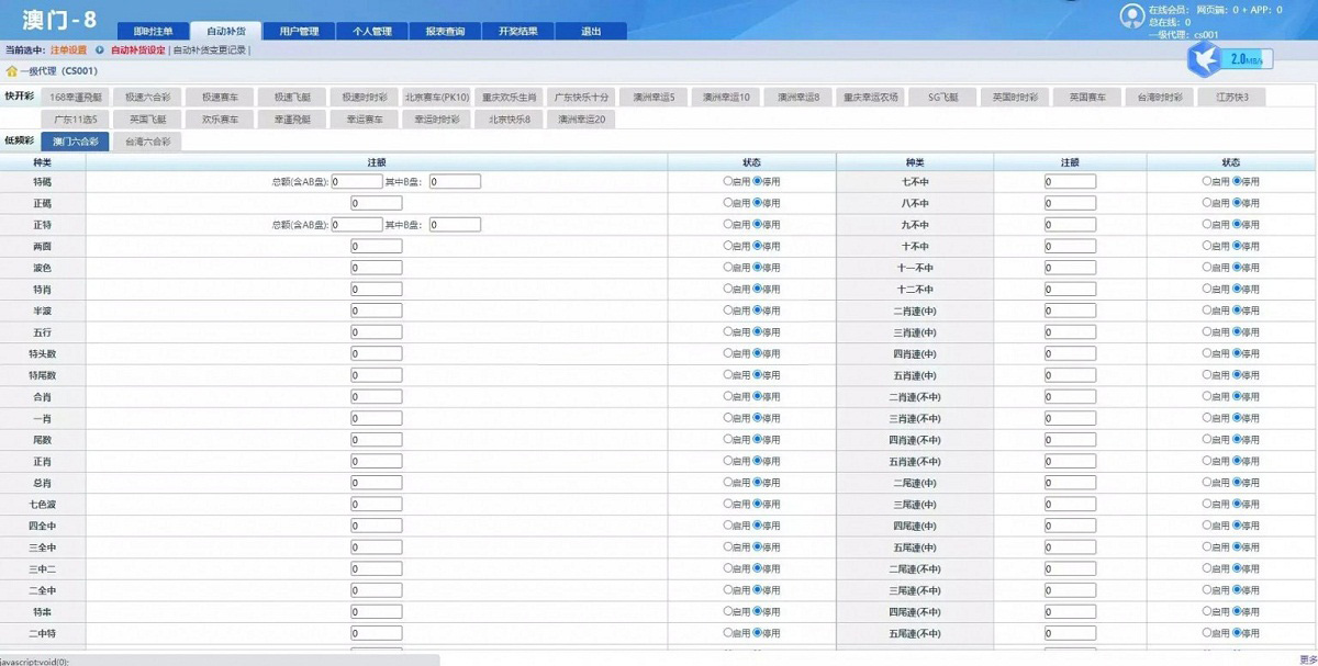 好友3000买的,以前没见过这套,彩种很多,带改单,带飞单。可以根据自己需要打开或者关闭,php的,没有加密,可以任意二开。信用+现金双网,注意,这是不带wap的版本,不是缺了wap端,是生来没有。独立的代理后台,和oa不一样。也不是中原,也不是bw